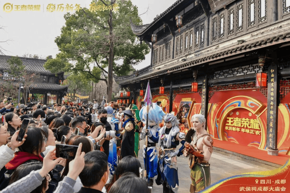 回顾春节期间,成都高新区的数字文创活力也是吸引了众多海内外游客。丙午新春,“成都高新造”《王者荣耀》携手自贡灯会、粤港澳大湾区灯会、成都大庙会,带来峡谷限定新春盛宴,以当代数字科技赋能中国传统三国文化,打通了游戏IP粉丝与传统文创消费的转化通道,为中国文化注入数字文创新活力。