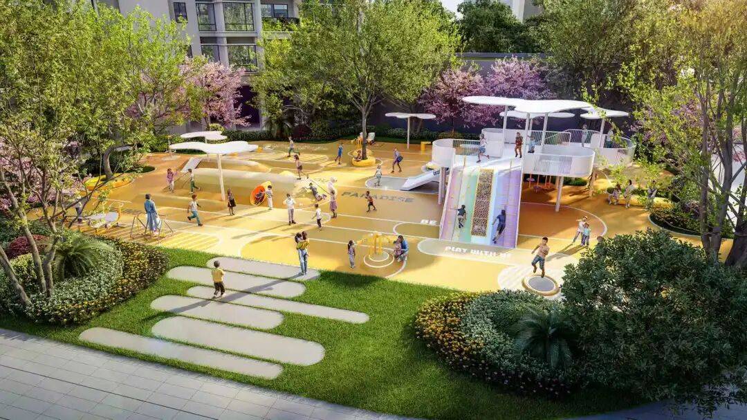 :规划超 800㎡全龄儿童乐园,分幼儿区(0-3 岁)、儿童区(4-6 岁)、青少年区(7-12 岁),配备滑梯、秋千、攀爬架、沙池等安全游乐设施,孩子可在社区内安全玩耍,结识小伙伴,快乐成长。
