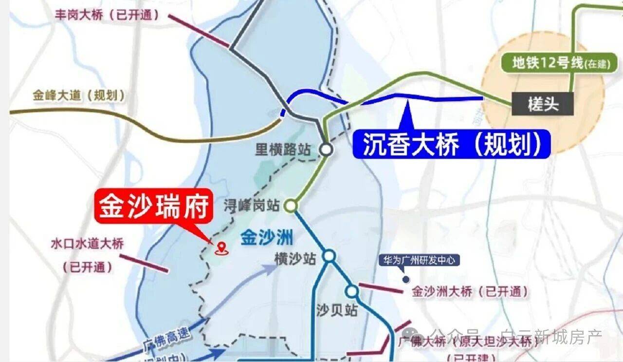 除了轨道交通,项目周边的地面道路交通网络同样发达。金沙洲大桥、大坦沙大桥等现有桥梁已经承担了巨大的交通流量,而沉香大桥、同心桥、碧江大桥等规划中的交通设施,将进一步加密区域路网。特别是沉香大桥,预计明年将开工建设,通车后将从根本上解决金沙洲北部与白云新城之间的交通瓶颈,两地车程将缩短至5公里以内,真正实现“半小时生活圈”的无缝衔接。
