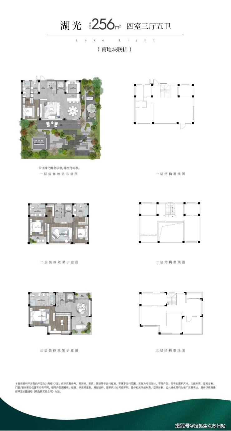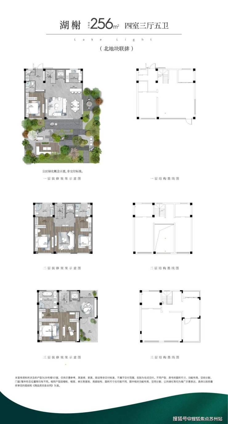 (*北地块联排边户)256平(四房三厅五卫): 【礼序归家】尊享独立入户,进出从容不迫,尊奢由表及里 【自在随心】3面宽格局设计,空间灵活多变,生活更加精彩 【朝阳起居】阳光老人房间,便捷居者使用,安放康乐晚年 【私享领域】酒店式主卧套房,预设独立卫浴空间,匹配尊崇气度