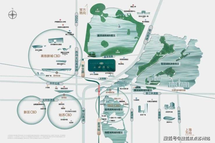 交通便捷:紧邻苏州高铁北站,通过中环北线国道等多条交通干线,可快速到达苏州主城区及周边城市。阳澄西湖南隧道已通车,阳澄湖第三隧道预计2026年年底通车,未来轨交2号线号线规划站点距离项目也较近。