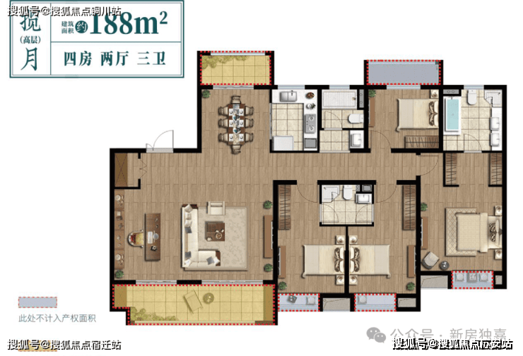 (低于2.2米的车库,杂屋没有产权),建筑如配套游泳池、车库等不算面积);