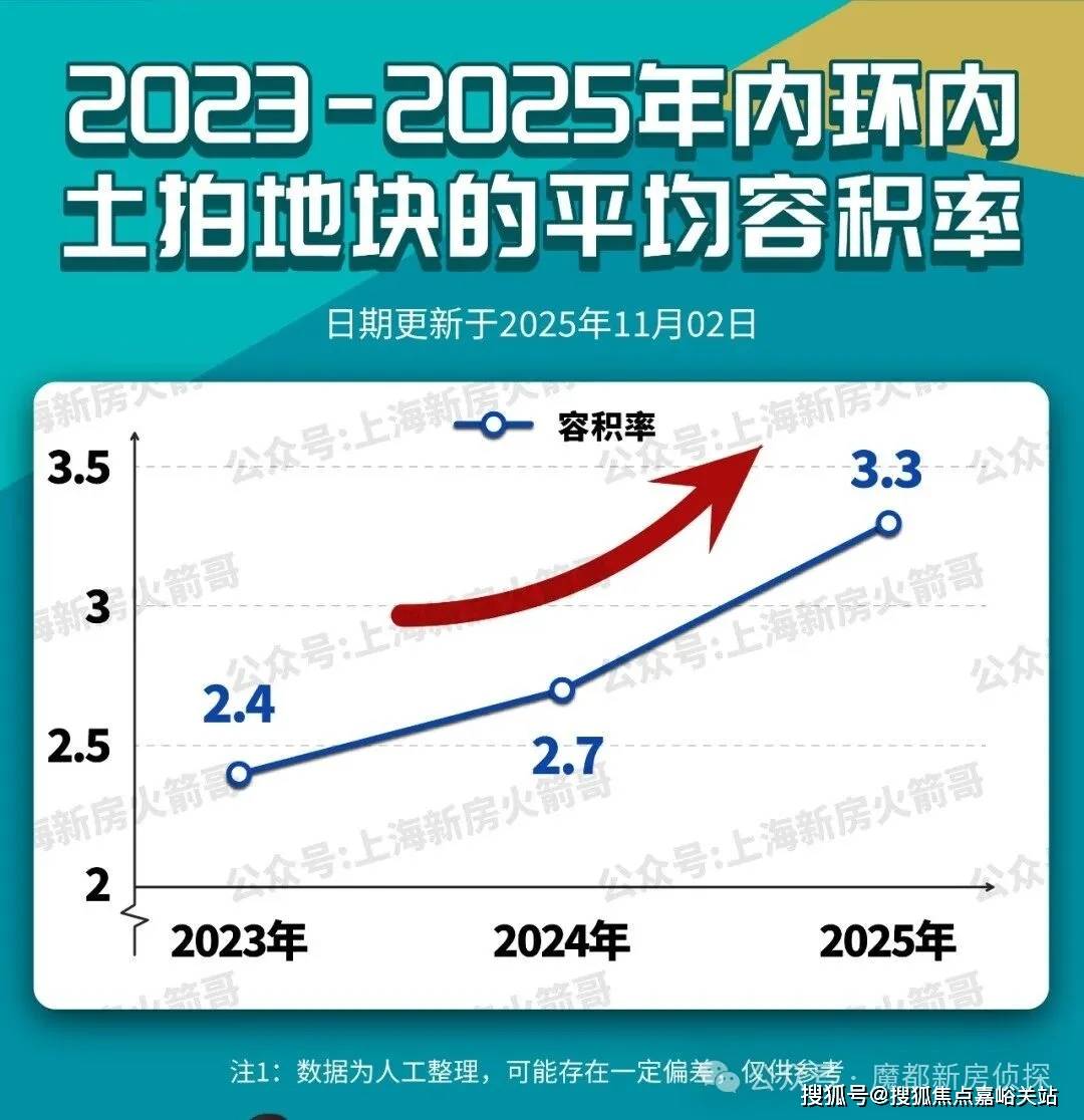 根据数据统计,这几年上海从外环外到中环再到内环,容积率一路走高,中内环的新房容积率普遍超过3.0。
