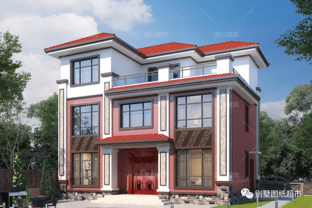 建筑偏向新中式风格,立面采用浅色的真石漆给人一种干净的视觉感。灰瓦屋顶十分传统,配合平面展现更多层次。窗户设计为落地窗,夜晚灯光衬托下整个建筑散发出家的温度。二楼的玻璃阳台,与建筑主体颜色一致,赋予建筑整体古典和雅致韵味,与相对简约的立面造型十分统一。返回搜狐,查看更多