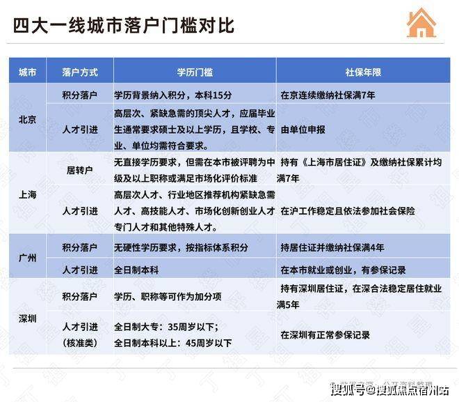 从7个超大城市落户门槛来看,四大一线城市落户门槛相对较高,其中北京和上海依然是落户门槛最高的两个城市,积分落户社保要满七年,深圳和广州分别是五年和四年;从学历门槛来看,深圳是唯一仍对全日制大专生开放直接落户通道的一线城市。
