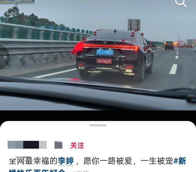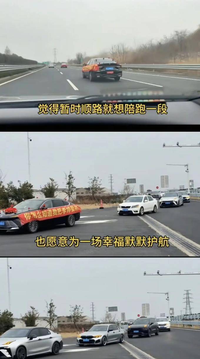 领克、荣威、宝马、奔驰等品牌都有黑色、白色和银色的车型,一辆接一辆,都在高速上通过双闪技术跟随,形成了一支没有预先计划或约定的迎亲车队。