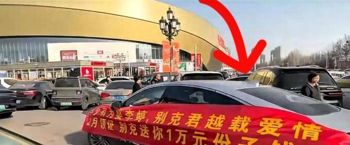别克的官方决定将那辆婚车的照片替换为自己账户的封面,并通过直播方式传递祝福。各个地方的4S店也开始采取行动,有的店的入口处直接悬挂了一条横幅,内容是:“年轻时为了娶李婷,别让你背负更多的爱情。”一眼望去,就觉得很吸引人。