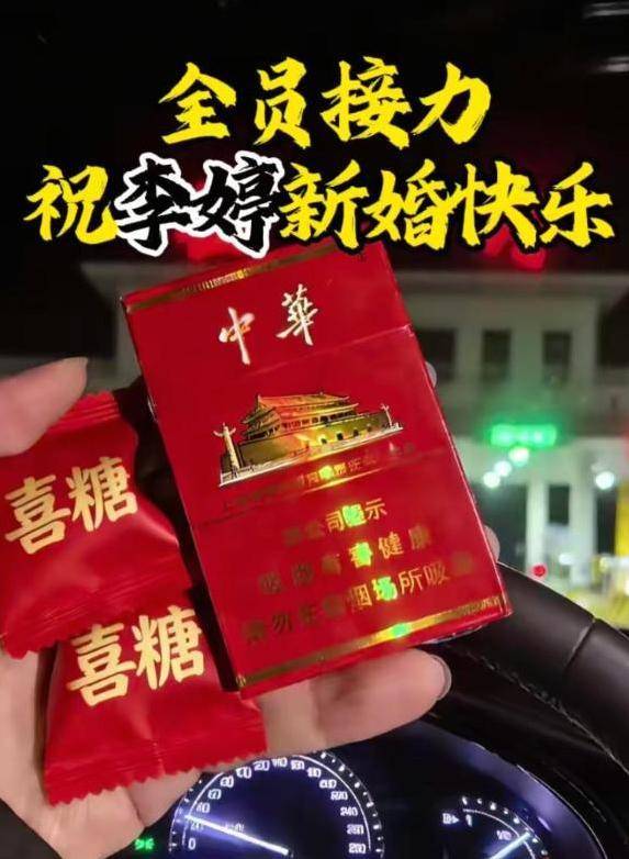 一位车主拿到了香烟,并特意在朋友圈分享了一张照片,图片上的文字写着:“李婷的中华。”接着,他又补充说:“这逼我结婚的那一天还要兴奋。”