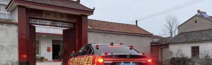 随后,有网友分享了一张照片:一辆黑色的别克婚车稳稳当当地停在一个农家院的门前,门上的红绸还未完全拉起,院子里也没有铺设红毯。