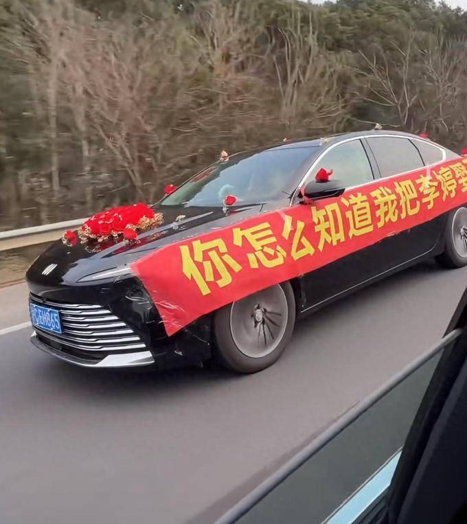 2月10日的凌晨三点多钟,沪蓉高速公路上,气温骤降至零下三度,冷得令人难以忍受。一辆别克君威孤独地在街道上奔跑,车门上悬挂着一条醒目的红底黄字横幅,上面写着:“你怎么知道我已经娶了李婷”。