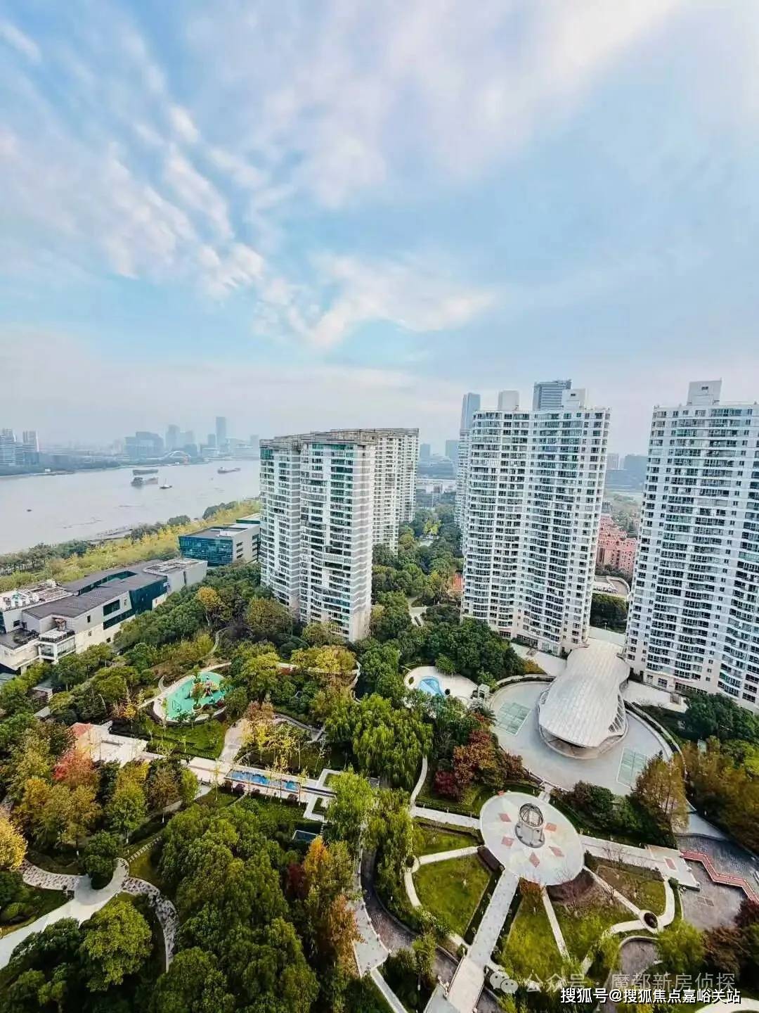 又比如宝格丽酒店旁的华侨城苏河湾88号院,即使是40层的超高层,低区视野依旧一览无余,因为前排是联排别墅和成片的历史风貌区,视野一览无余: